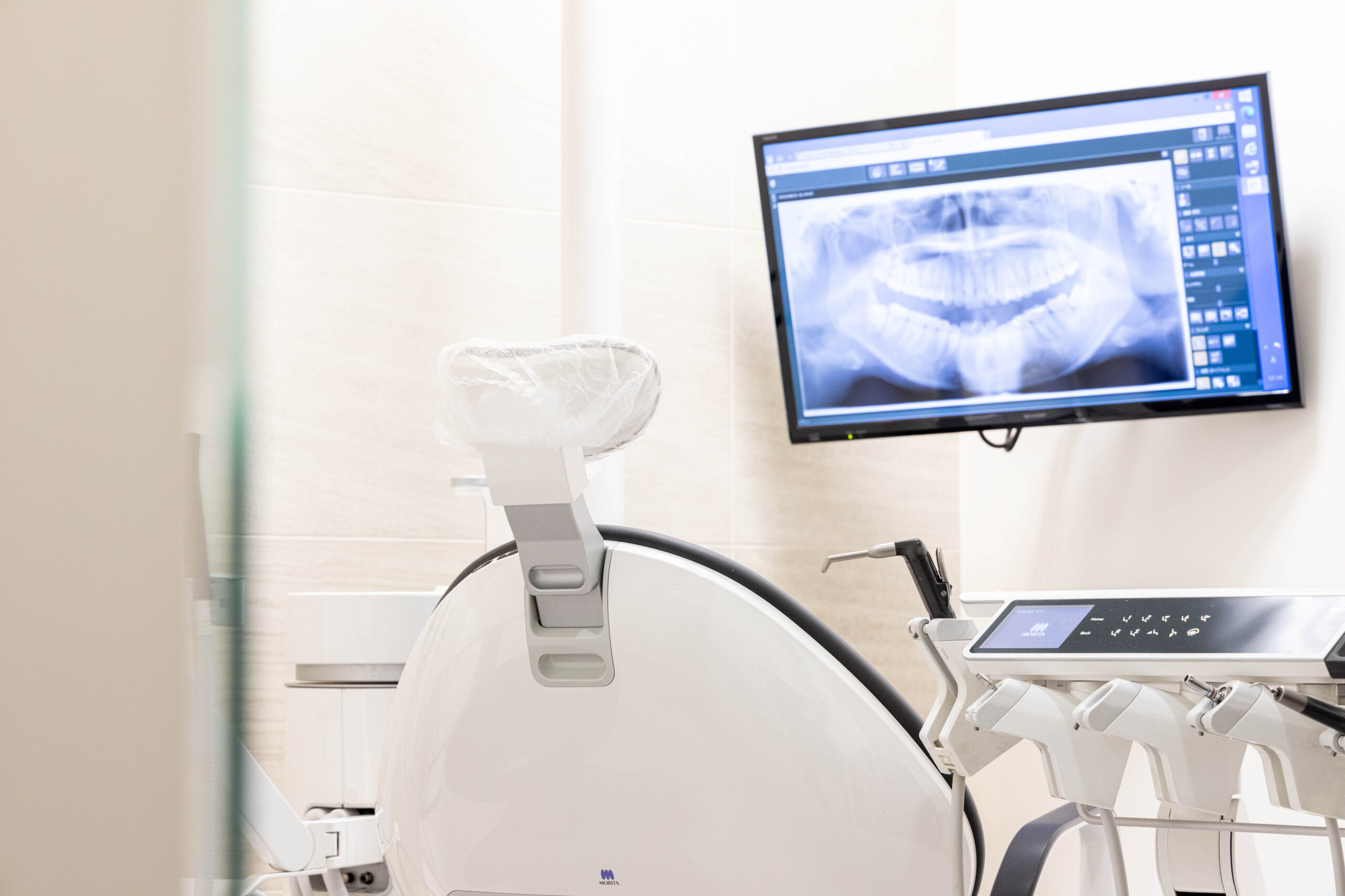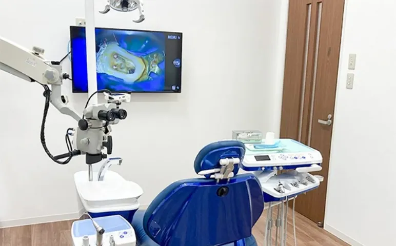 歯を拡大して観察できる歯科用顕微鏡。肉眼では確認が難しい根管の内部を詳細に把握し、精密な治療に役立ちます。