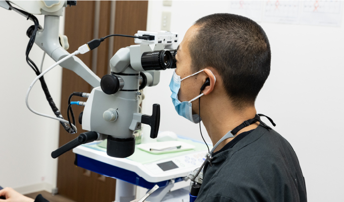 マイクロスコープを使うことで、根管内部を高倍率で拡大・明るく可視化し、細部まで丁寧に処置を行うことが可能になります。
